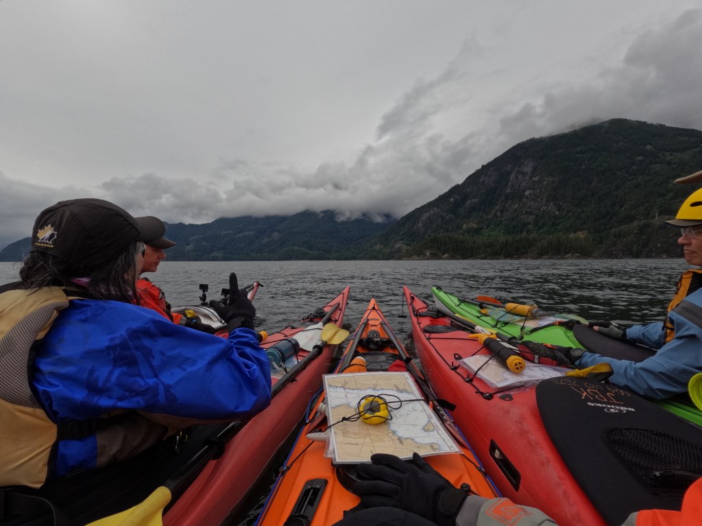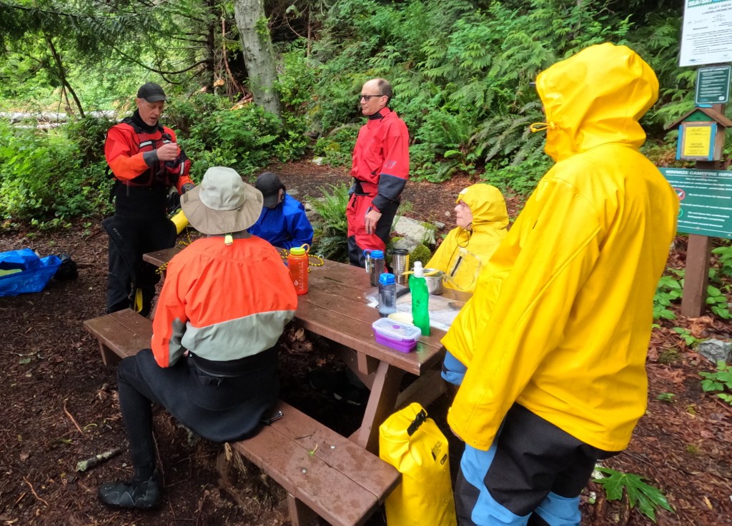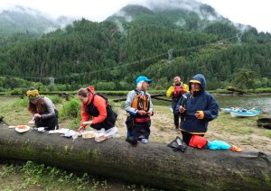 Mike and I rocked up to Xwawchayay (Porteau Cove) to find all the students already arrived and keen to launch. Before that however, we had a bit of learning and planning to do, and gathered round the nearest picnic table as an al fresco classroom.