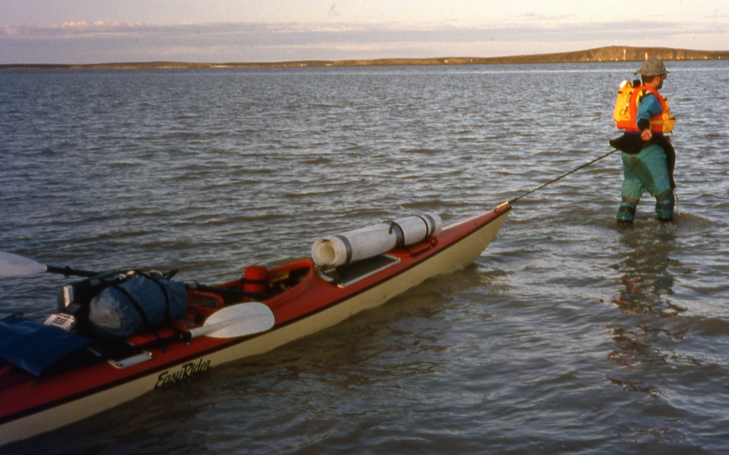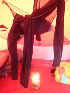 Once ashore for the day, I hung my drysuit liner suit in my tent’s gear loft, above the candle lantern I always carry in the shoulder seasons, so it could dry. Or at least graduate from saturated to merely clammy.