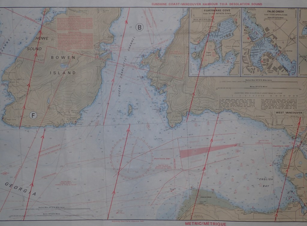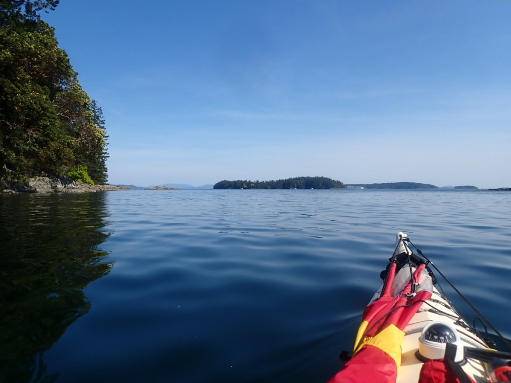 On the crossing, we practiced compass navigation, time-distance-speed calculations and the use of ranges. We made landfall just south of the Defence Islands, then turned north to handrail along the shore to Ts’itpsm (Zorro Bay).