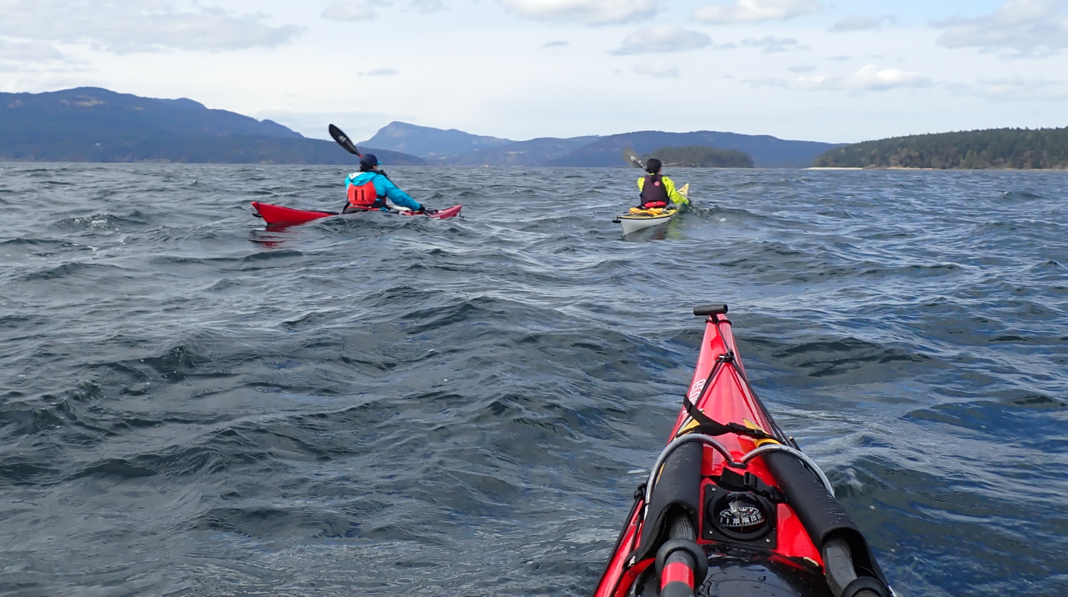 I have a semi-unconscious response, developed during years of solo touring, to paddling in lively seas: I burst out into sea shanties. Fortunately for the rest of the group, the wind snatched away most of what we’ll call, for want of a better word, my singing. So they were not subjected to my offkey and misremembered version of “Jack was every inch a sailor.”
