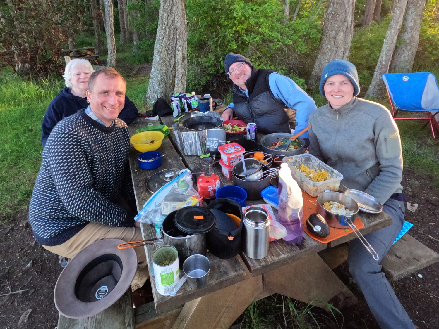 Since the weather was cool with occasional showers, once we’d landed for lunch at Islet View, I fired up my MSR Windburner to provide hot water for soup and tea. Over years of shoulder season touring, I’ve found alternating bites of any lunch with swigs of hot soup makes even cold sandwiches feel like a hot meal. Appropriately enough, the lunchtime learning topics included managing hypo and hyperthermia.