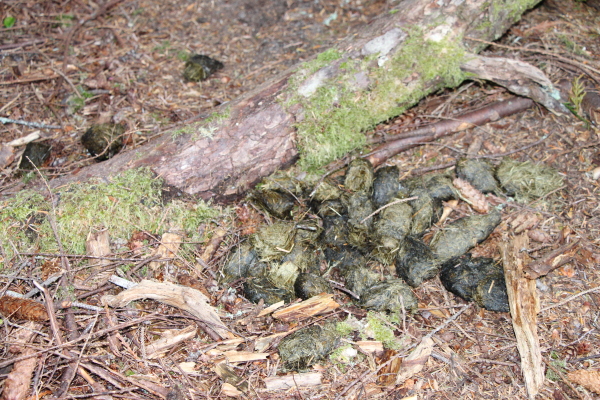 By noon, I was fighting both countercurrents and headwinds as I made my way east along the north side of Johnstone Strait. By the time I reached Blenkinsop Bay in the early evening , I was tired and felt I’d done a fair day’s work. The land around the bay had been logged, but it had a sandy beach, a border of trees and upland camping (nice during this near full moon period of spring tides). It wasn’t until after I’d unloaded all my gear and begun to explore that I found fresh bear tracks and scat.
