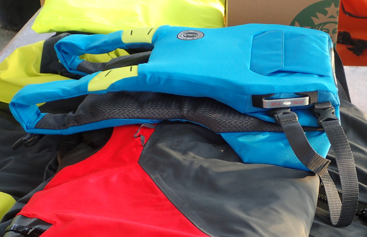 The Khimera PFD. Note the aluminum handle for firing the inflation cartridge.