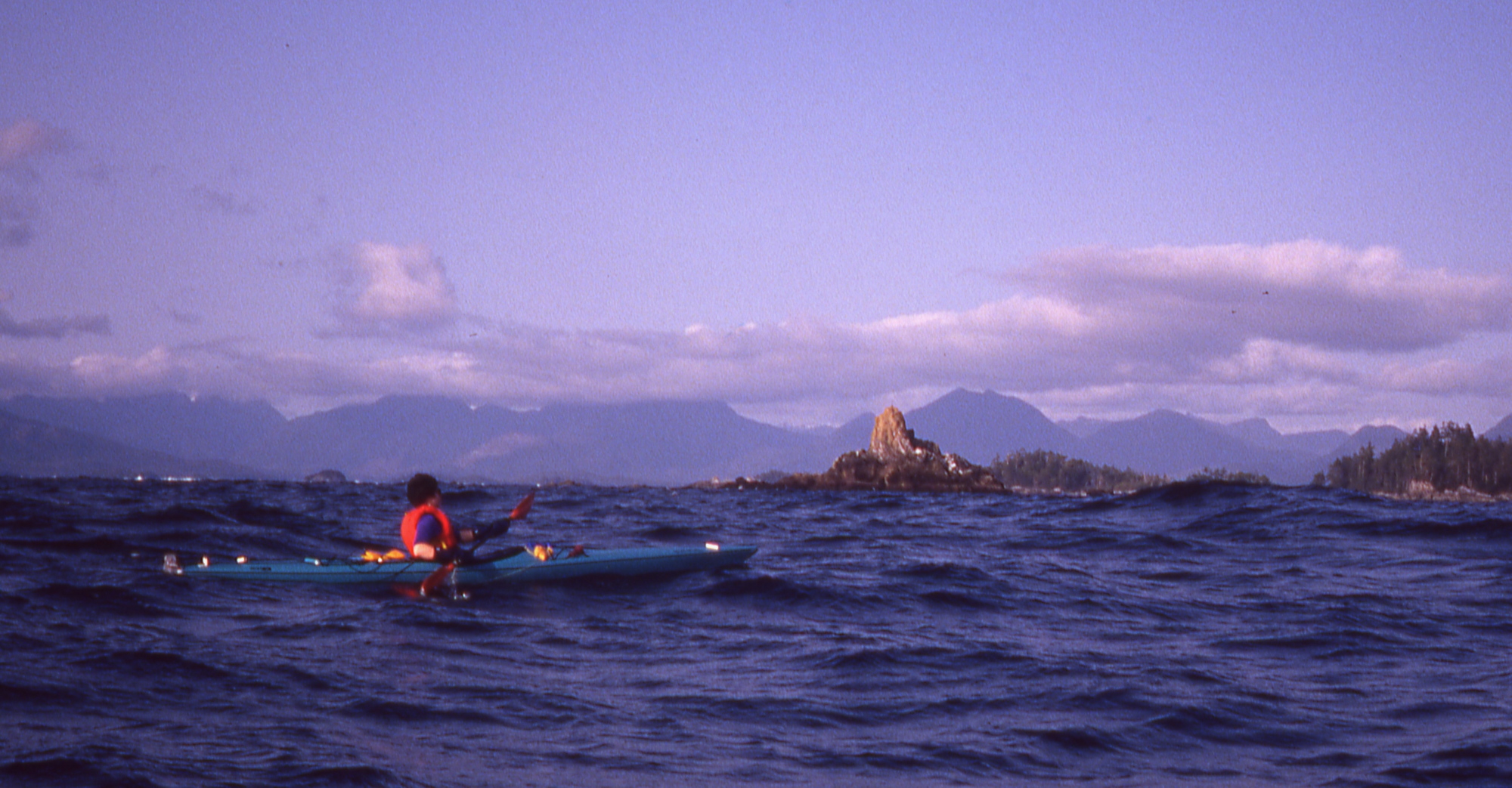 My trip partner and I were paddling to the Broken Group Islands directly from Ucluelet, via the exposed outer route. We were doing this partially because we were young and tough and competent. But mostly because my ancient station wagon** had expensively disembowelled itself when we’d attempted the logging road to the usual put-in at Toquart Bay. We weren’t keen to repeat the experiment.