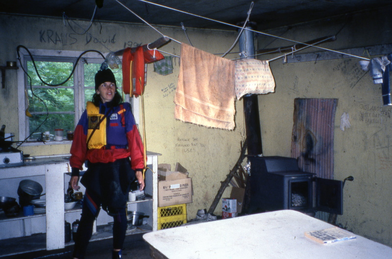 We slipped into the safety of Hansen Bay just after noon, both of us exhilarated by the chance to test our paddling skills. After lunch, we paddled up the lagoon. At the northeast end, next to a swiftly flowing river, we found an old cabin used by hikers. Many had scrawled names, dates, boasts and poems on the walls.