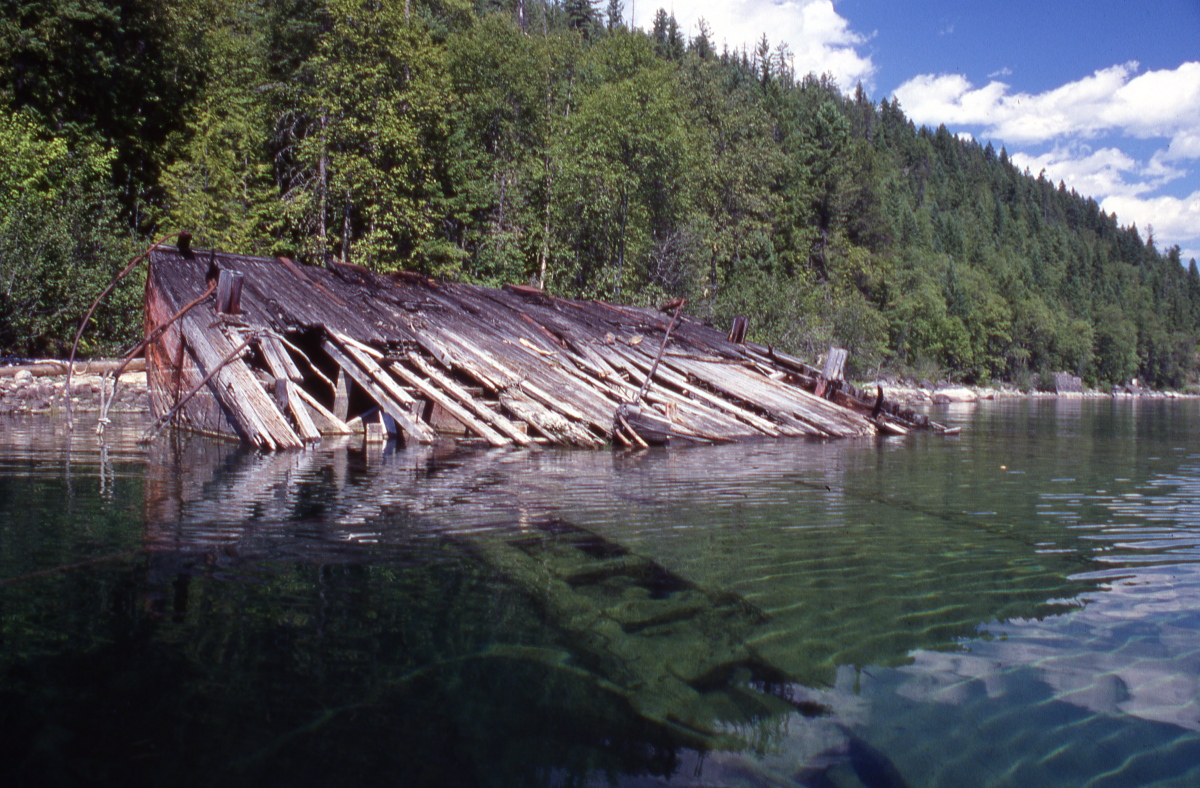 Apparently the barge drifted about Slocan Lake for years, a sort of low-rent Flying Dutchman and hazard to navigation, until some local worked up the initiative to beach it where I’d seen it that morning.