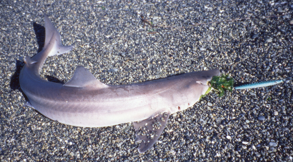 Some sixth sense made me glance over the side just as I was about to sway my catch on board. Good thing: what I had on the hook was a Spiny Dogfish, AKA a mud shark. Dogfish are small as sharks go — only two to three feet long. But that’s still a bit big to be sharing a kayak cockpit with, especially as in addition to their nasty teeth and sandpaper skin, Dogfish have a pair of venomous spines they deploy from their top fins when threatened. Hardly the sort of animal you want between your thighs, let alone near family jewels shielded only by thin nylon shorts.
