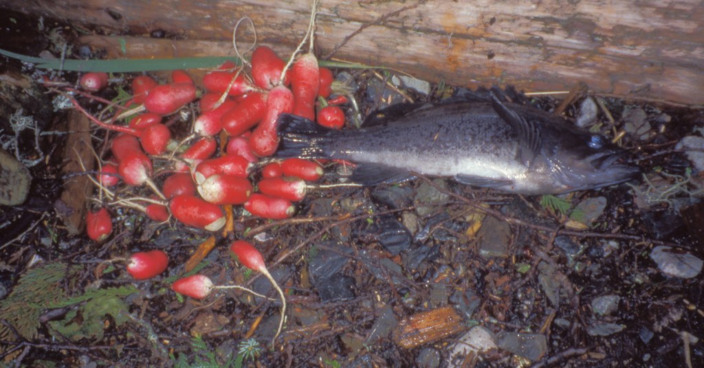 Just as I was writing the paragraph above, I heard John returning yet again – this time bearing a gift of a black rockfish. I was glad for the fresh supper makings and happy to have a chance to give him the book in person.