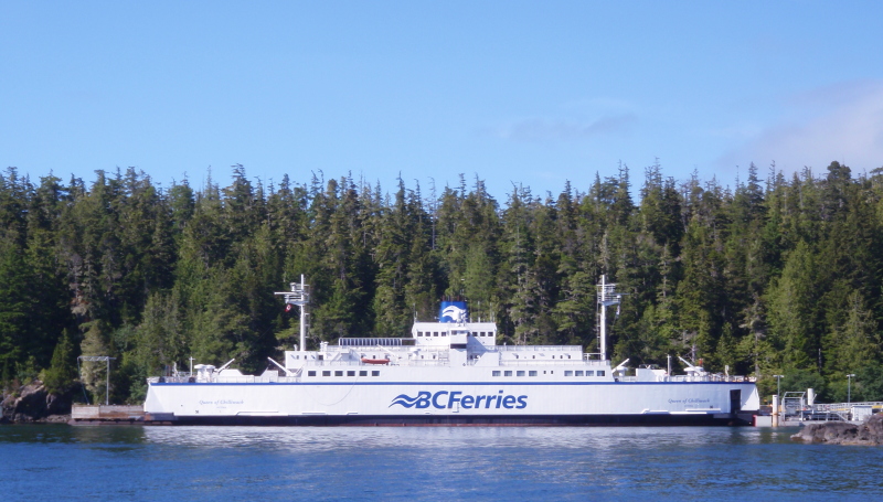 I wheeled my kayak aboard the Queen Of Chilliwack at Port Hardy at about 20:00 hours. After a late supper of burger and fries in the cafeteria, I found a quiet corner of the solarium on the upper deck, and made camp with my mat and sleeping bag. As we steamed north through the night, the weather changed from clear skies to the cloud and light rain more typical of the central coast.
